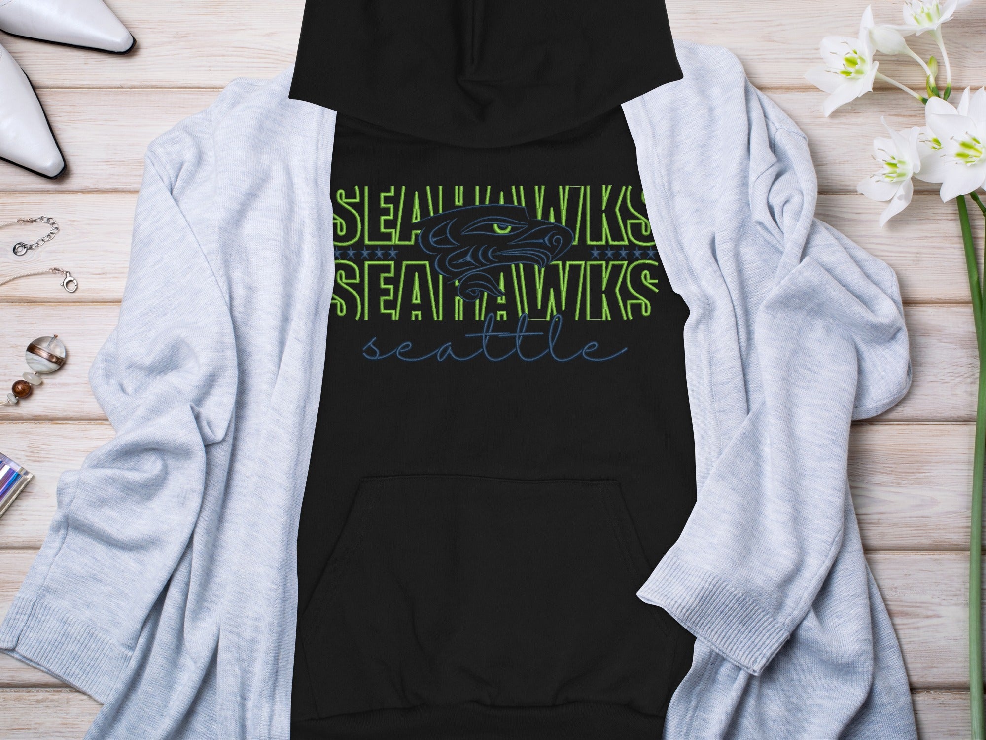 Show your team spirit with this unique Seattle Seahawks themed hoodies. Perfect for game day, everyday wear, or as a gift for the football fanatic in your life. Get ready to cheer on your favorite team in style.